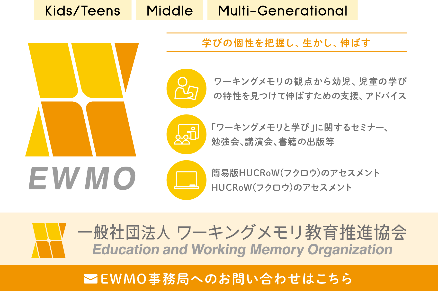 私たちは子どもからシニアまで、それぞれの人生のステージに応じたBrainとMindのWellnessを目指し、セルフケアやそのプロセスに関連するサービスを提供します。