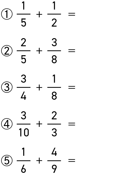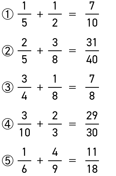 懐かしい「通分」の問題です。頭の中での計算処理は、メモを取りながらの計算と比べて疲れたのではないでしょうか。