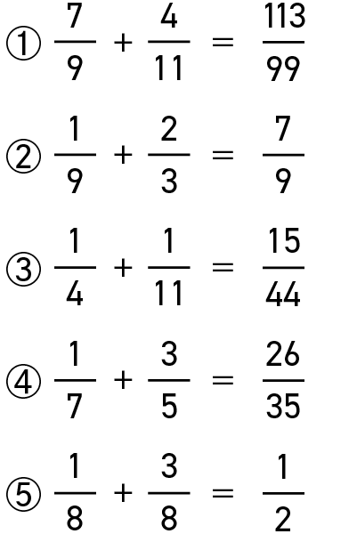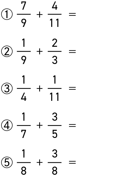 懐かしい「通分」の問題です。頭の中での計算処理は、メモを取りながらの計算と比べて疲れたのではないでしょうか。