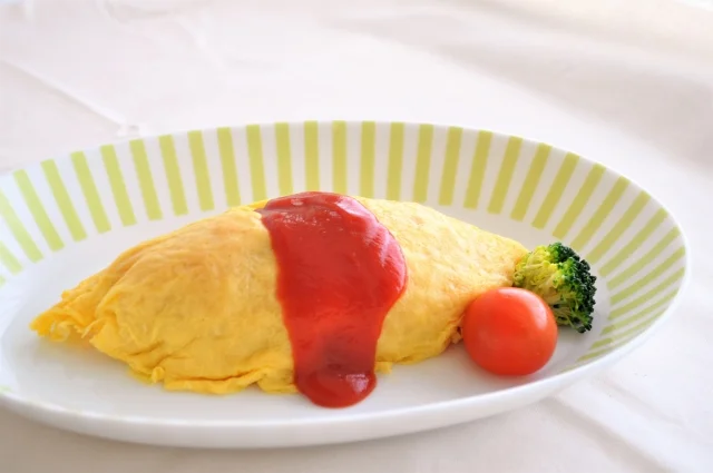 「日本発祥の料理で、いためたごはんを薄い卵で包み、ケチャップやデミグラスソースを添え、鶏肉や野菜などの具を入れることもある料理は?」