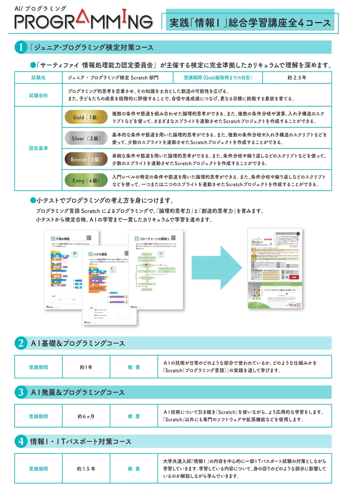 ジュニア・プログラミング検定対策からAI(機械学習)の理解、情報1やITパスポート検定対策、Word・Excelまで